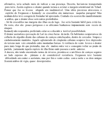 para terra. Assim cogitava o doutor quando tornou a avistar a margem setentrional do Tchad.