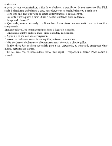 o peso de seus companheiros, a fim de estabelecer o equilíbrio de seu aeróstato. Fez Dick