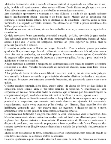 diâmetro horizontal e vinte e dois de diâmetro vertical. A capacidade do balão interno era,
