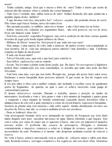 – Escute. Vou levantar a planta exata desta jazida, que lhe darei. No seu regresso à Inglaterra