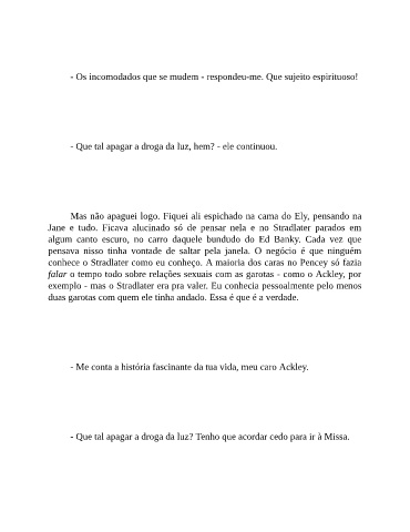conhece o Stradlater como eu conheço. A maioria dos caras no Pencey só fazia