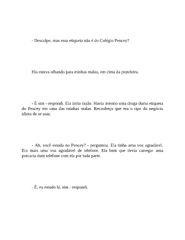 - Ah, você estuda no Pencey? - perguntou. Ela tinha uma voz agradável.