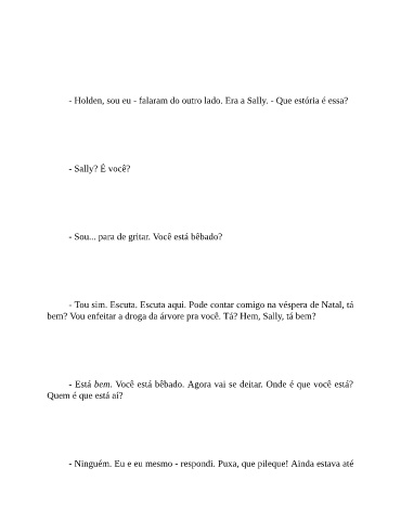 - Holden, sou eu - falaram do outro lado. Era a Sally. - Que estória é essa?