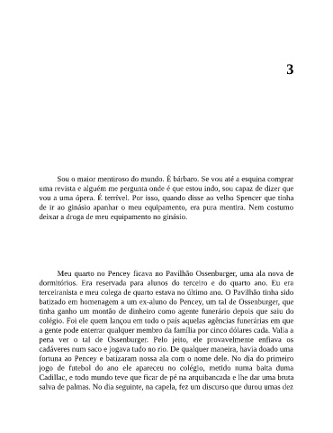 Meu quarto no Pencey ficava no Pavilhão Ossenburger, uma ala nova de