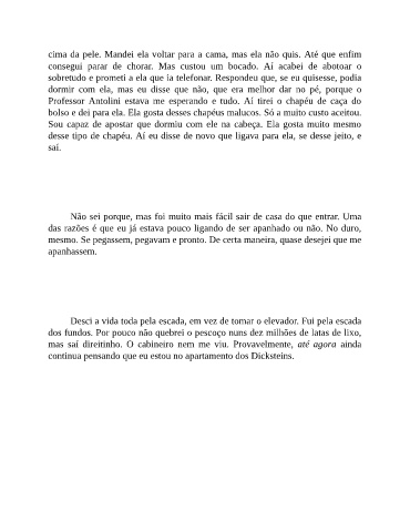 cima da pele. Mandei ela voltar para a cama, mas ela não quis. Até que enfim