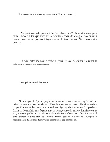 regulamento. Ele nunca fumava no dormitório, era sempre eu.